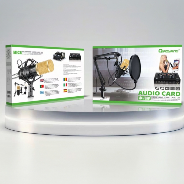 Conjunto Microfone Condensador e Placa de Som QA-T606