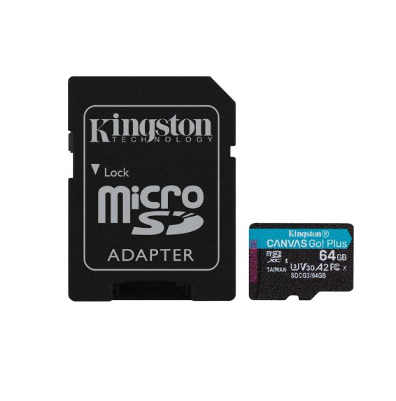 Kingston 64GB Micro SDXC Canvas Go! Plus Class 10 UHS-I U3 V30 A2 – SDCG3/64GB