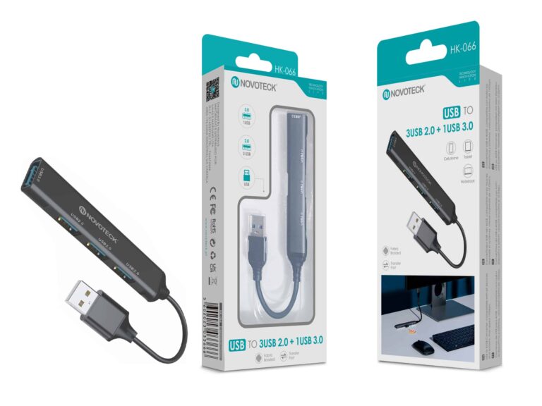 Hub USB NOVOTECK – Expansão com 3 Portas USB 2.0 e 1 Porta USB 3.0 HK-066