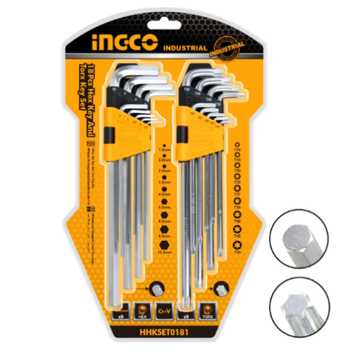 Conjunto de 18 Peças com Chaves Hexagonais e Torx HHKSET0181 ING-HT