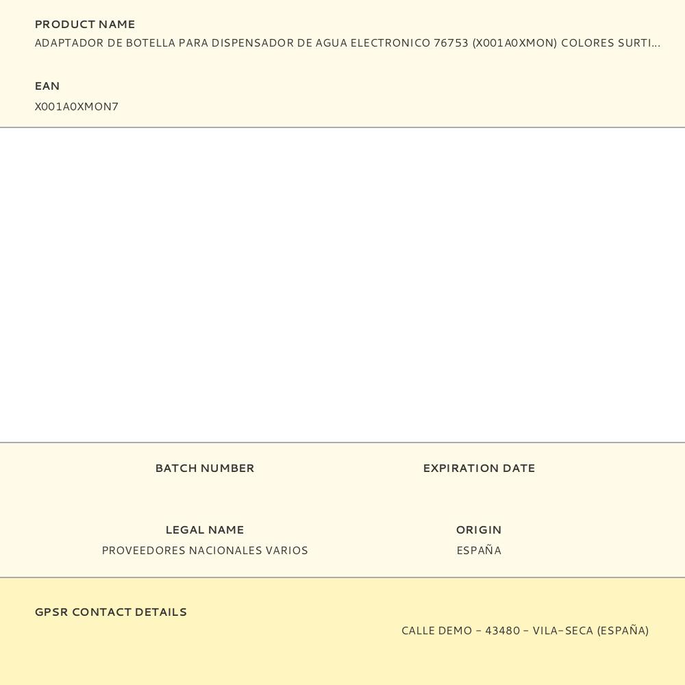 ADAPTADOR DE GARRAFA PARA DISPENSADOR DE ÁGUA ELETRÔNICO 76753 (X001A0XMON). CORES SORTIDAS