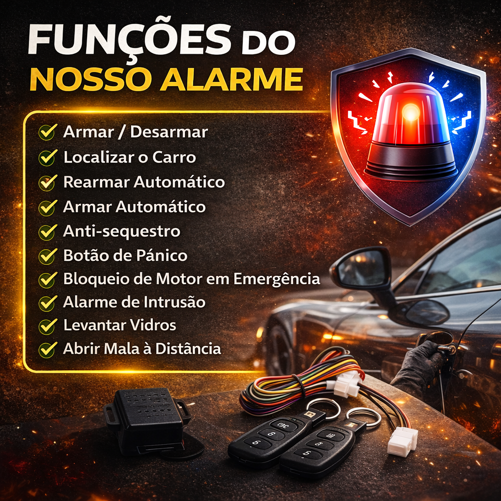 ALARME AUTOMÓVEL UNIVERSAL – KIT COMPLETO DE SEGURANÇA