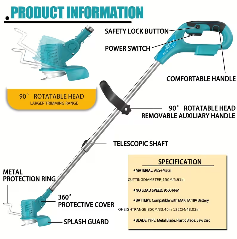 Seja o primeiro a avaliar “Aparador de Relva Sem Fios 21v | Aparador de Jardim com 2 x Baterias de 3Ah, Lâminas de Metal & 2 Lâminas de Serra Circular, Cabeça Rotativa de 90°, Lâminas de Substituição de Troca Rápida para Poda de Jardins, Relvados | Plástico, Bateria de Lítio Recarregável, 305mm a 762” Cancelar resposta
