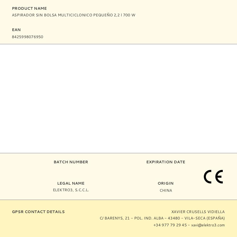 ASPIRADOR MULTI-CLONE. 700 W. DEPÓSITO 2,2 L. 80dB. CABO 220-240V 50Hz 3m (COLHEITA AUTOMÁTICA DE CABOS). FILTRO LAVÁVEL E FÁCIL DE ESVAZIAR. SEM SACO. DUTO ROTATIVO 360°. INCLUI ACESSÓRIOS. CABEÇA DE ESCOVA MACIA, TUBO DE LIGAÇÃO E CANTO COM MINI ESCOVA MACIA ASPIRADOR IDEAL PARA TODO O TIPO DE PAVIMENTOS E SUPERFÍCIES. DIMENSÕES: 24,8×34,2×29,7cm CLASSE ENERGÉTICA A