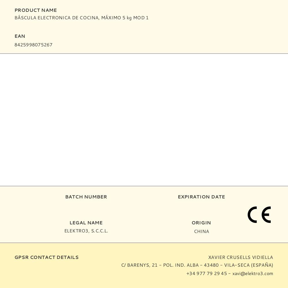 BALANÇA DE COZINHA DIGITAL MAX. 5kg MOD 1 EDM
