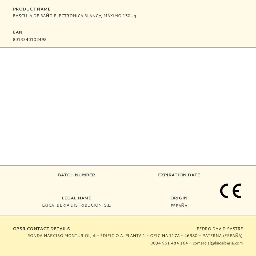 BALANÇA ELETRONICA PARA SALA DE BANHO COR BRANCO MÁX. 150kg PS1068W 30,3×30,3x2cm (largura/profundidade/altura) LAICA