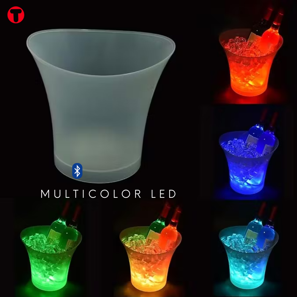 Transforme qualquer ambiente com este incrível balde de gelo iluminado com luzes LED RGB e som de qualidade! Ideal para festas, eventos ou momentos relaxantes, este balde combina design moderno, iluminação colorida e uma coluna Bluetooth integrada de 20W que anima qualquer ocasião.