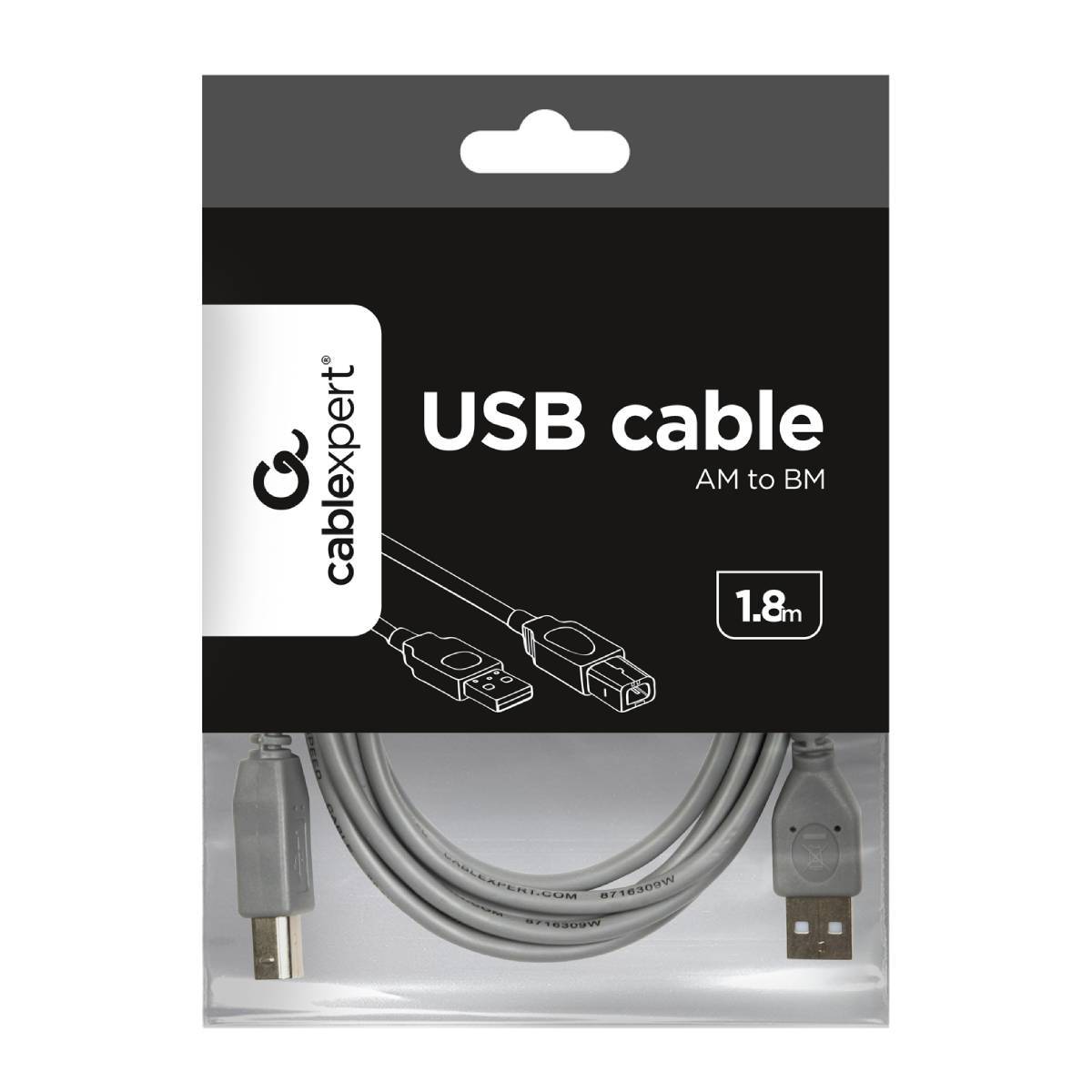 Cabo Gembird USB2.0 A/B 1,8m Cinza