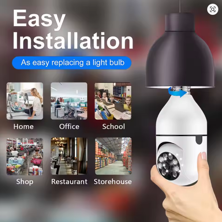 💡📹 Câmera de Segurança Wi-Fi em Formato de Lâmpada – 2MP, Soquete E27