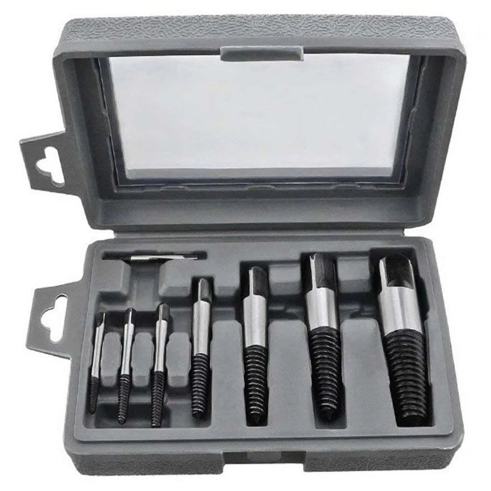 Este conjunto profissional inclui 8 extratores de parafusos de diferentes tamanhos, perfeitos para retirar parafusos, pinos e fixadores que estejam partidos, corroídos, sem cabeça ou completamente danificados.