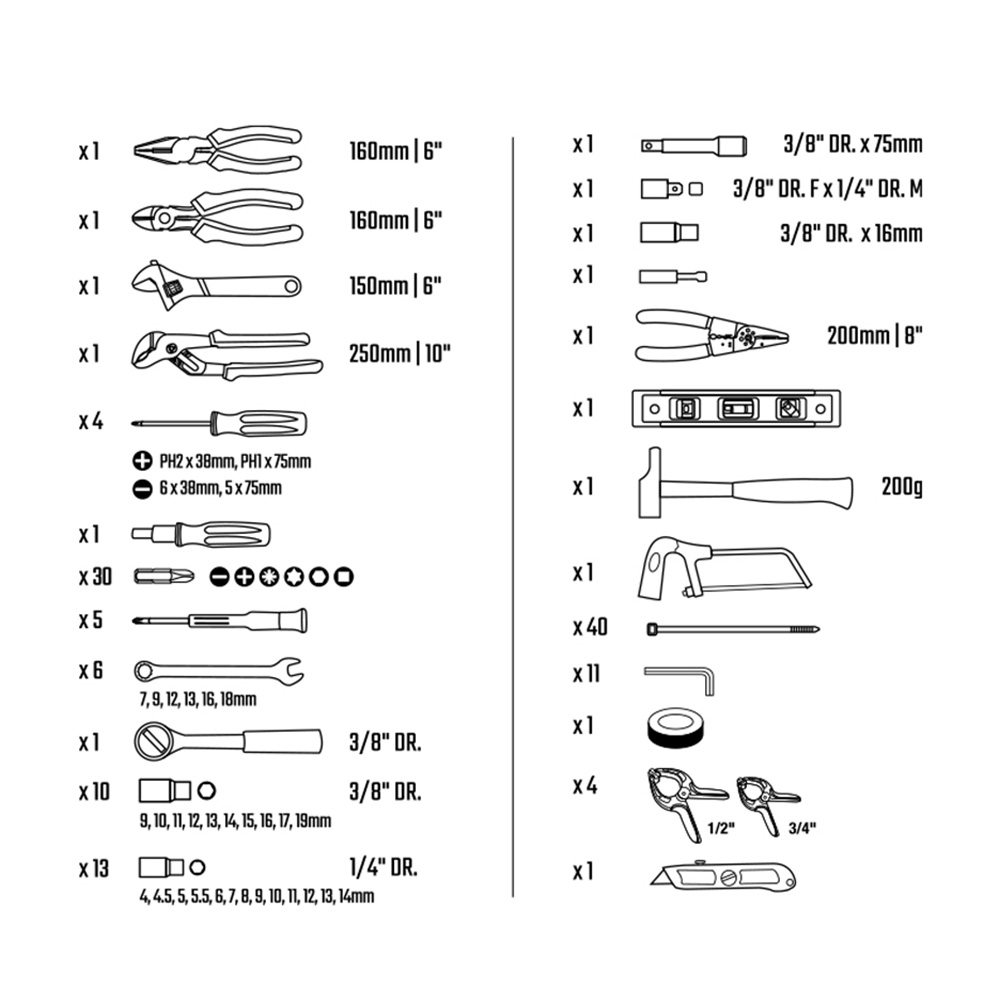 Este kit completo de ferramentas foi pensado para quem procura versatilidade, robustez e organização num único conjunto. Ideal para mecânicos, técnicos, bricolage, manutenção automóvel e uso doméstico avançado.