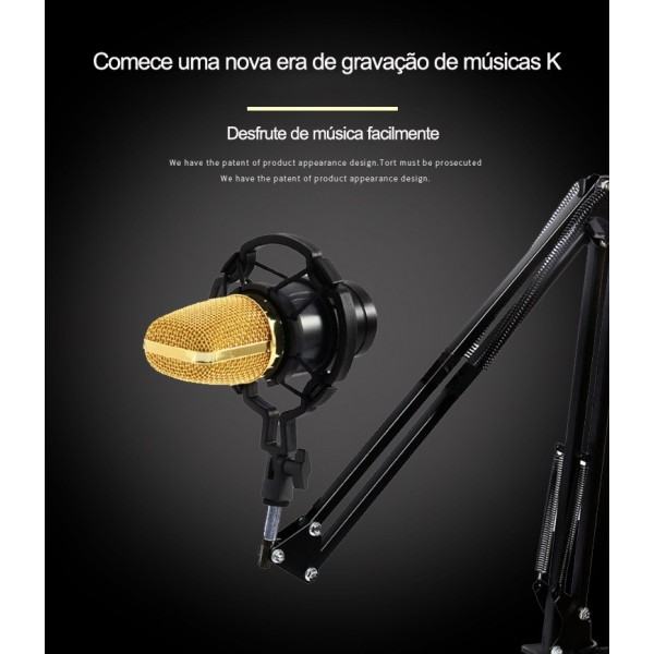 Conjunto Microfone Condensador e Placa de Som QA-T606