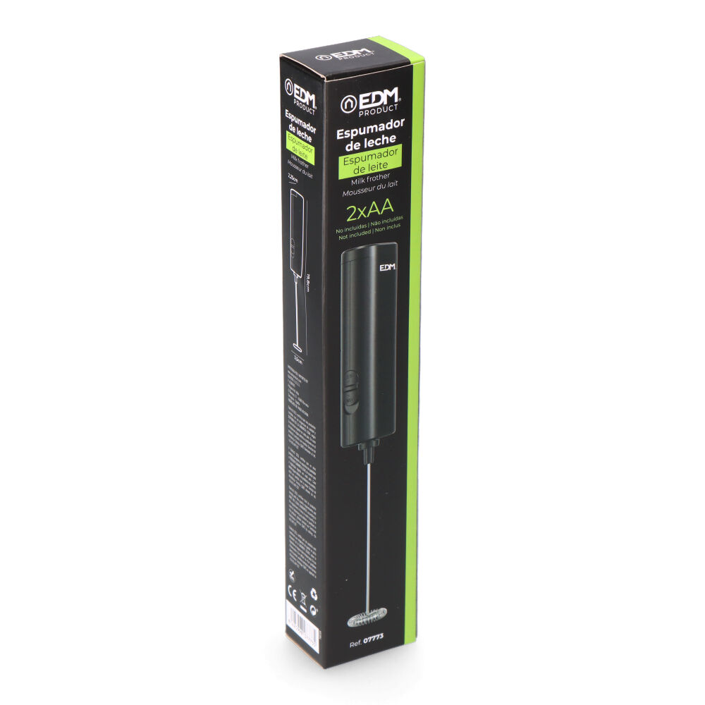 ESPUMADOR DE LEITE ELÉTRICO, ALIMENTAÇÃO 2 PILHAS AA – 1,5V (NÃO INCLUÍDAS). MOTOR DE ALTA ENERGIA 14000 rpm. TEMPO MÁXIMO DE TRABALHO3 MIN. A HASTE DE AÇO INOXIDÁVEL 304 NÃO É REMOVÍVEL. 3,5×2,25×19,8cm.