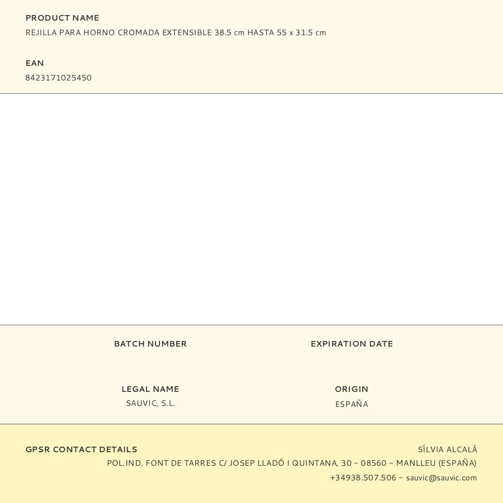 GRELHA EXTENSÍVEL CROMADA PARA FORNO DE 38,5cm ATÉ 55X31.5cm