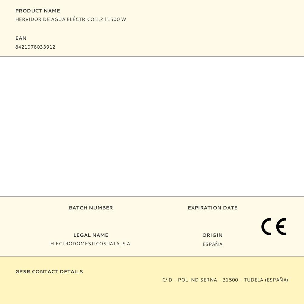 JARRO ELÉTRICO EM BOROSILICATO (SEM BPA) COM TAMPA. CAPACIDADE DE 1,2 l. PLACA DE AQUECIMENTO EM INOX. DESLIGA AUTOMÁTICO. PROTEÇÃO CONTRA SOBREAQUECIMENTO. INTERRUPTOR ON. JARRO SEMCABO. BASE GIRATÓRIA 360° COM ALOJAMENTO PARA CABO DE ALIMENTAÇÃO. TENSÃO 220 – 240 V. MÁX. POTÊNCIA 1.500 W