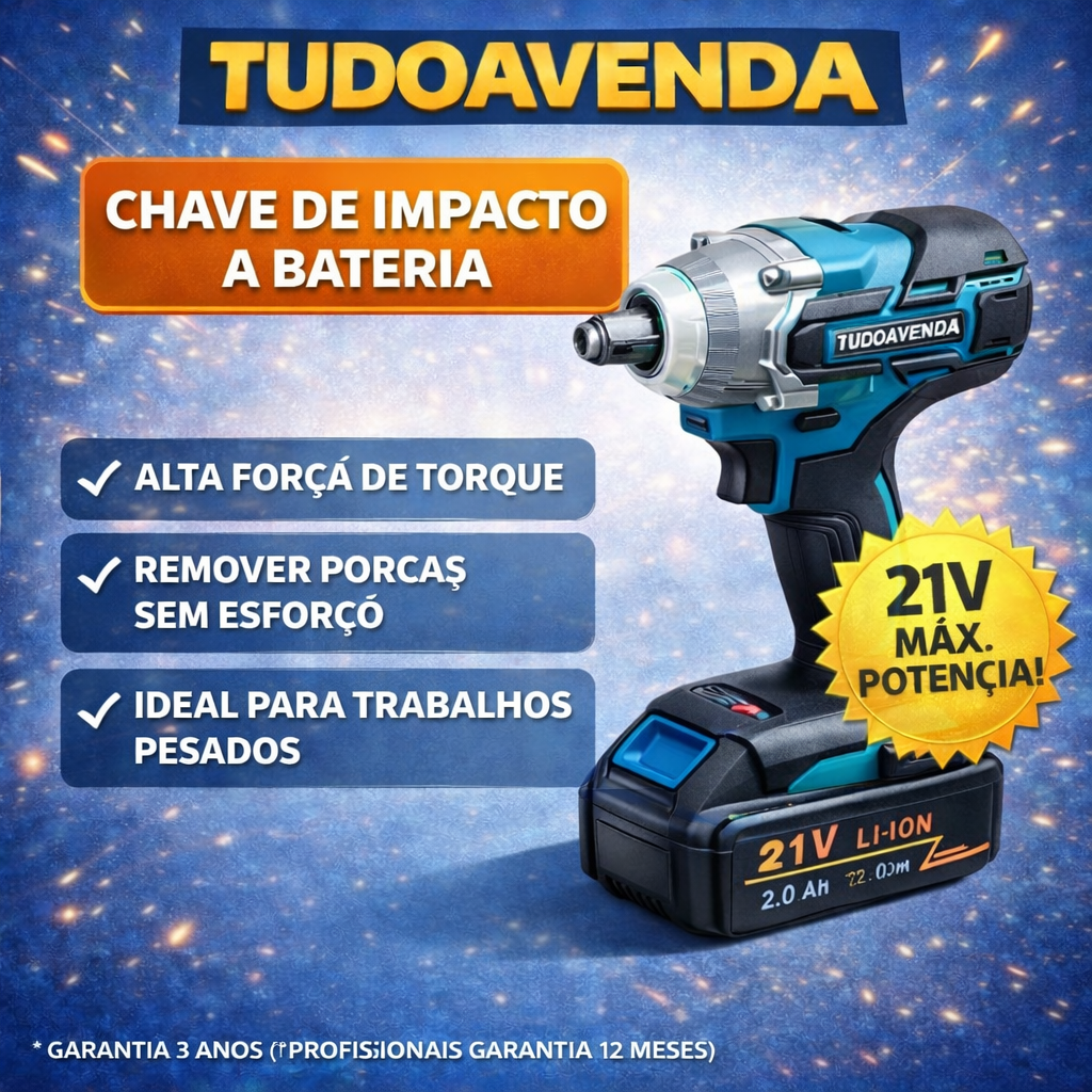 Ajuste de torque, perfuração e aparafusamento com precisão.⚡ Chave de Impacto 21V