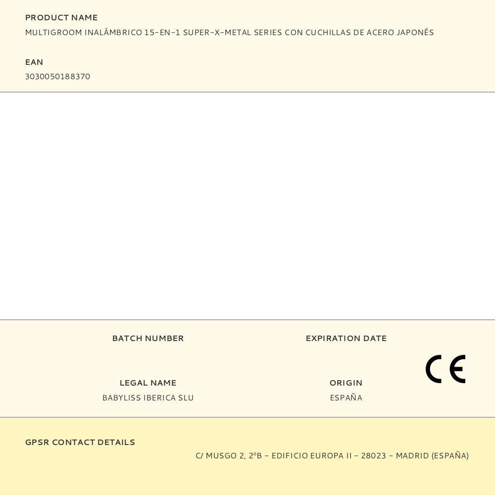MÁQUINA DE BARBEAR MULTIGROOM SEM FIOS 15 EM 1 SUPER-X-MEAL SERIES COM LÂMINAS DE AÇO JAPONÊS BABYLISS
