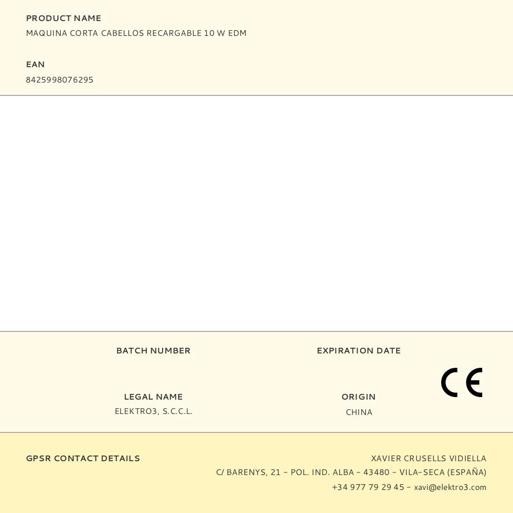 MÁQUINA DE CORTAR CABELO RECARREGÁVEL 10W SEM FIOS.. JOGO COMPLETO PARA TODA A FAMILIA. CABEÇA DE CORTE EXTRAÍVEL. FÁCIL DE LIMPAR. DESENHO ERGONÓMICO. 2 PENTES DE CORTE. FUNÇÃO PERFILAR. LUZ INDICADORA. 5,5x18x4,5cm (largura/profundidade/altura) 100-240V ~ 50/60Hz EDM