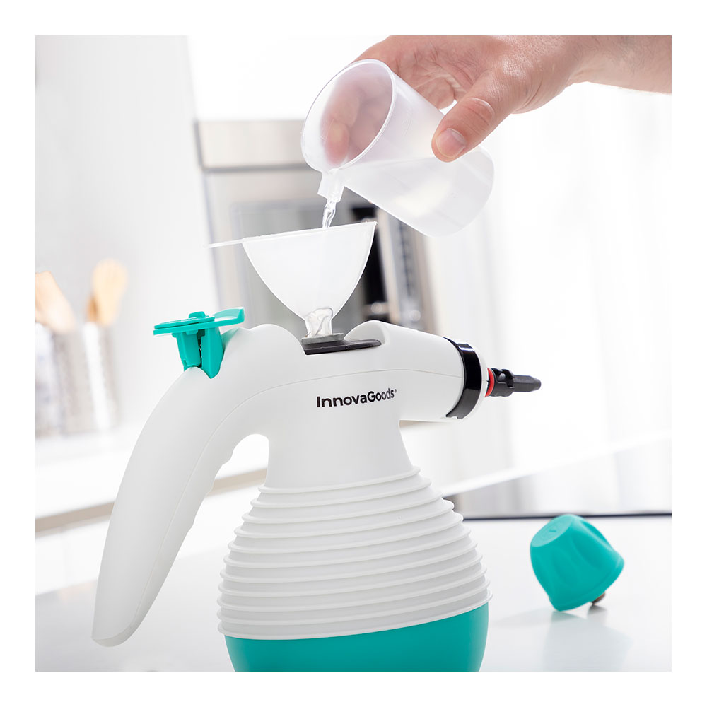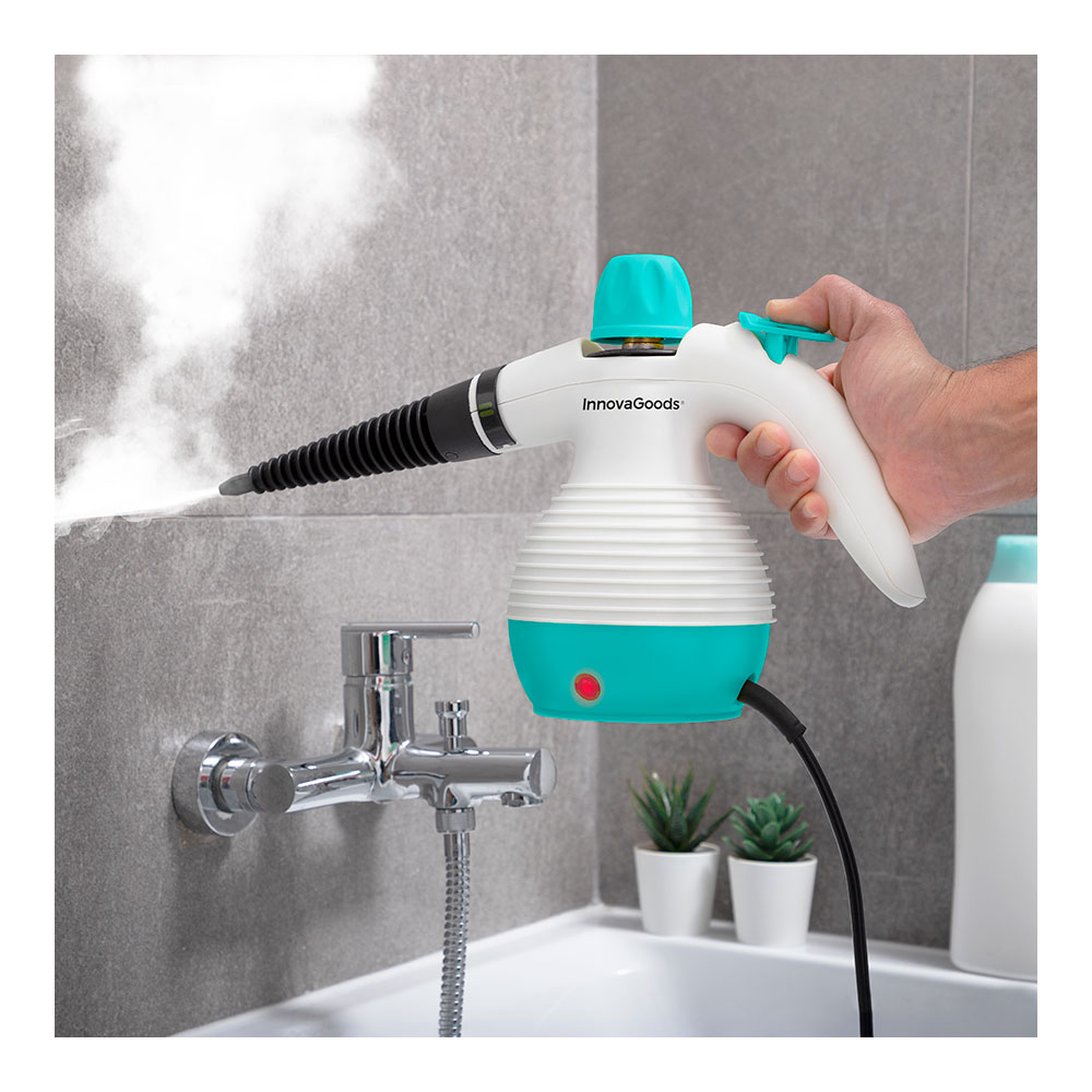 MÁQUINA DE LIMPEZA A VAPOR MULTIÚSOS COM ACESSÓRIOS 9 EM 1 STEANY 0,35L 3BAR 1000W V0103132 INNOVAGOODS. LIMPEZA A VAPOR MULTIÚSOS QUE INCLUI 9 ACESSÓRIOS PARA FACILITAR UMA LIMPEZA COMPLETA E EM PROFUNDIDADE. DEVIDO AO SEU DESIGN COMPACTO, É MUITO PRÁTICO E FÁCIL DE USAR. LIMPA E DESINFETA MEDIANTE A PRESSÃO DO VAPOR QUENTE, TOTALMENTE LIVRE DE PRODUTOS QUÍMICOS, ELIMINA EFICAZMENTE AS GORDURAS, BOLOR E MANCHAS. IDEAL PARA USAR EM WC, COZINHAS, CARROS, ETC, PERMITE A LIMPEZA EM SUPERFÍCIES DURAS (AZULEJOS, CHÃO, LAVA-LOIÇAS, BALCÕES, PORTAS, JANELAS, ETC) E EM SUPERFÍCIES SUAVES