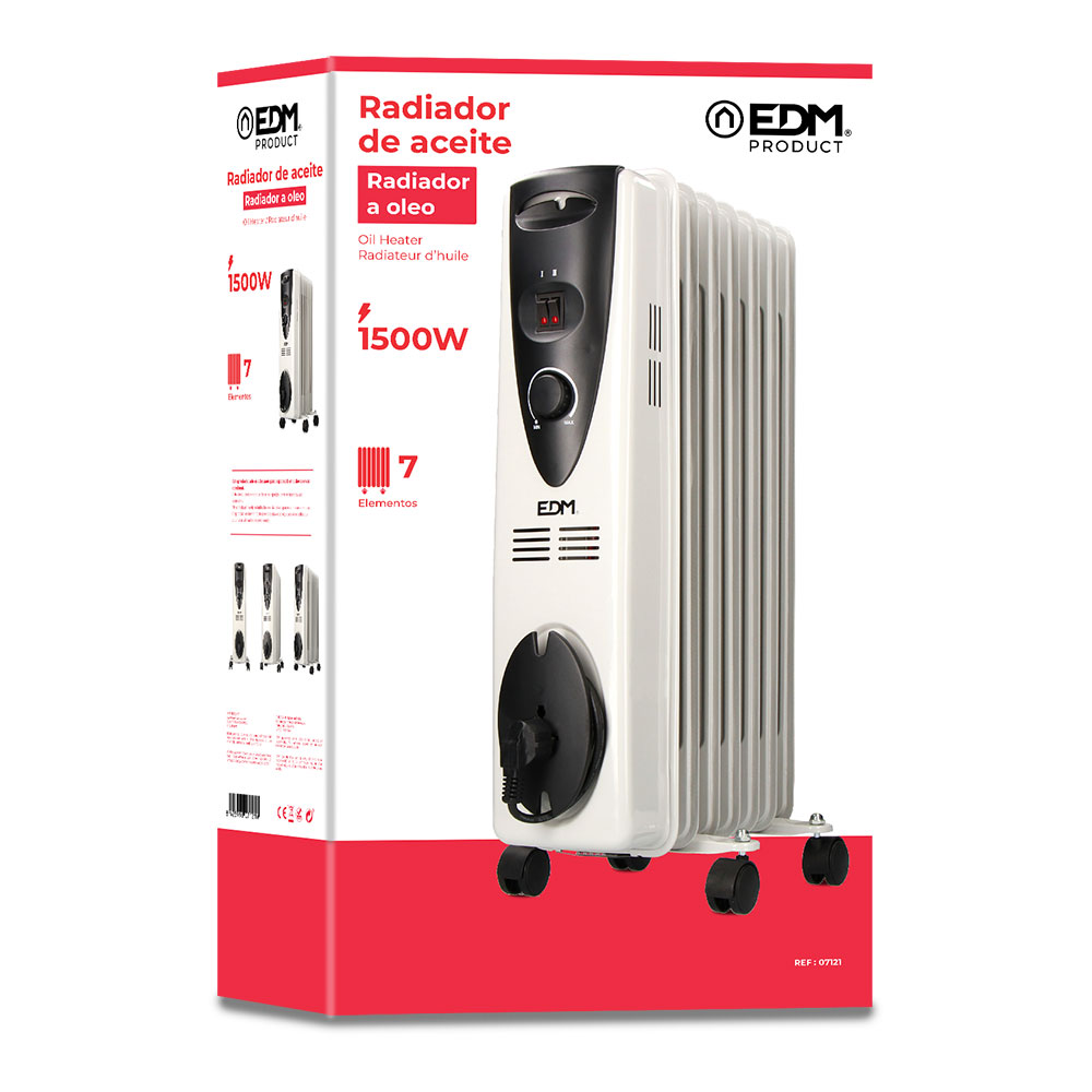 Mantenha a sua casa aquecida de forma eficiente e segura com o Radiador a Óleo de 1500W com 7 Elementos. Ideal para quartos, salas e escritórios, este aquecedor oferece um desempenho estável, silencioso e económico, proporcionando um conforto térmico constante mesmo nos dias mais frios.