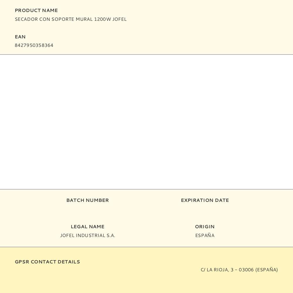 SECADOR COM SUPORTE DE PAREDE 1200W JOFEL