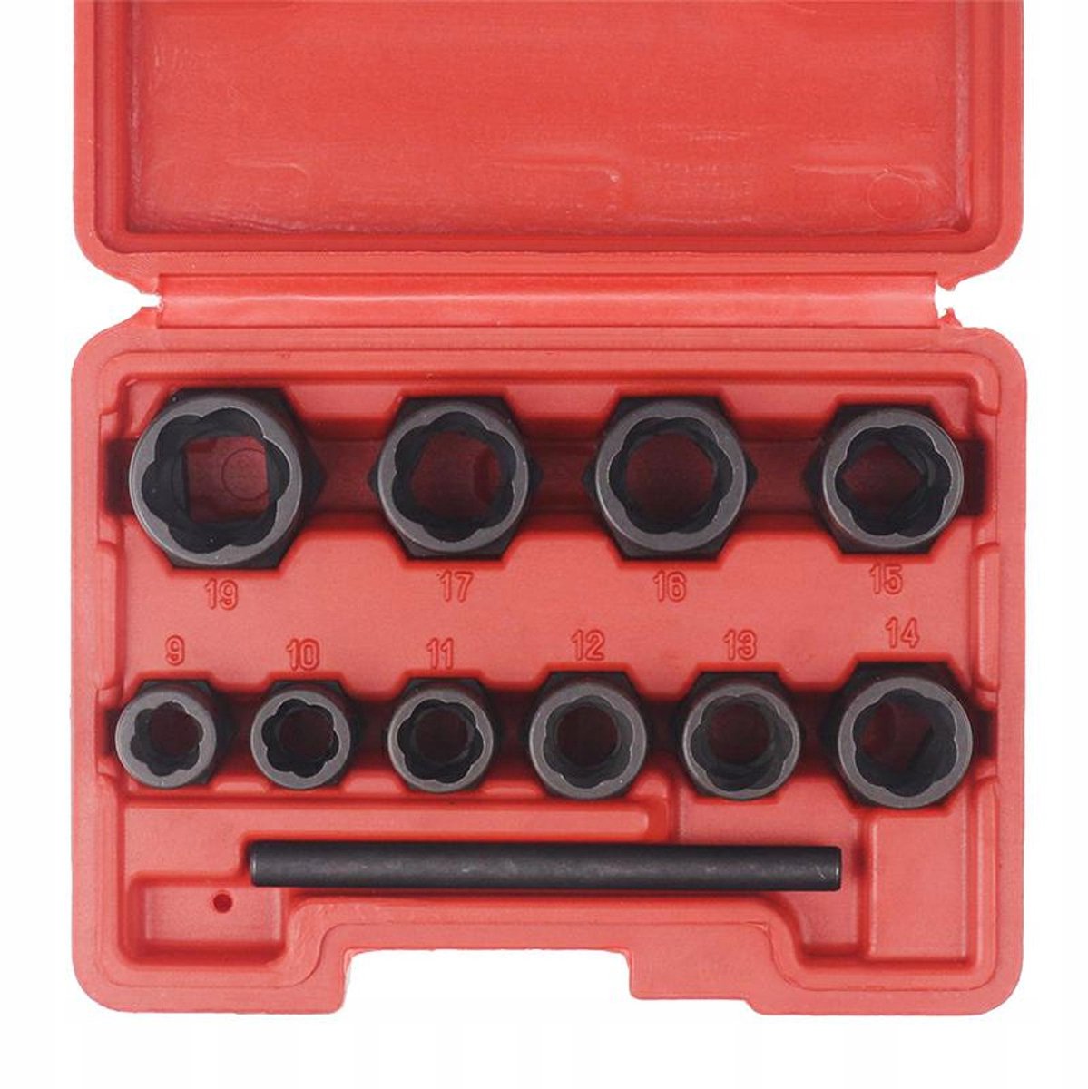 Este conjunto de 11 soquetes foi especialmente projetado para remover parafusos e porcas danificados e enferrujados. O formato interno exclusivo dos soquetes garante uma fixação firme na cabeça danificada, permitindo desaparafusá-la facilmente. A parte externa dos soquetes é adequada para uso com chave de boca ou chave de soquete. Ideal para mecânicos e entusiastas do faça-você-mesmo.